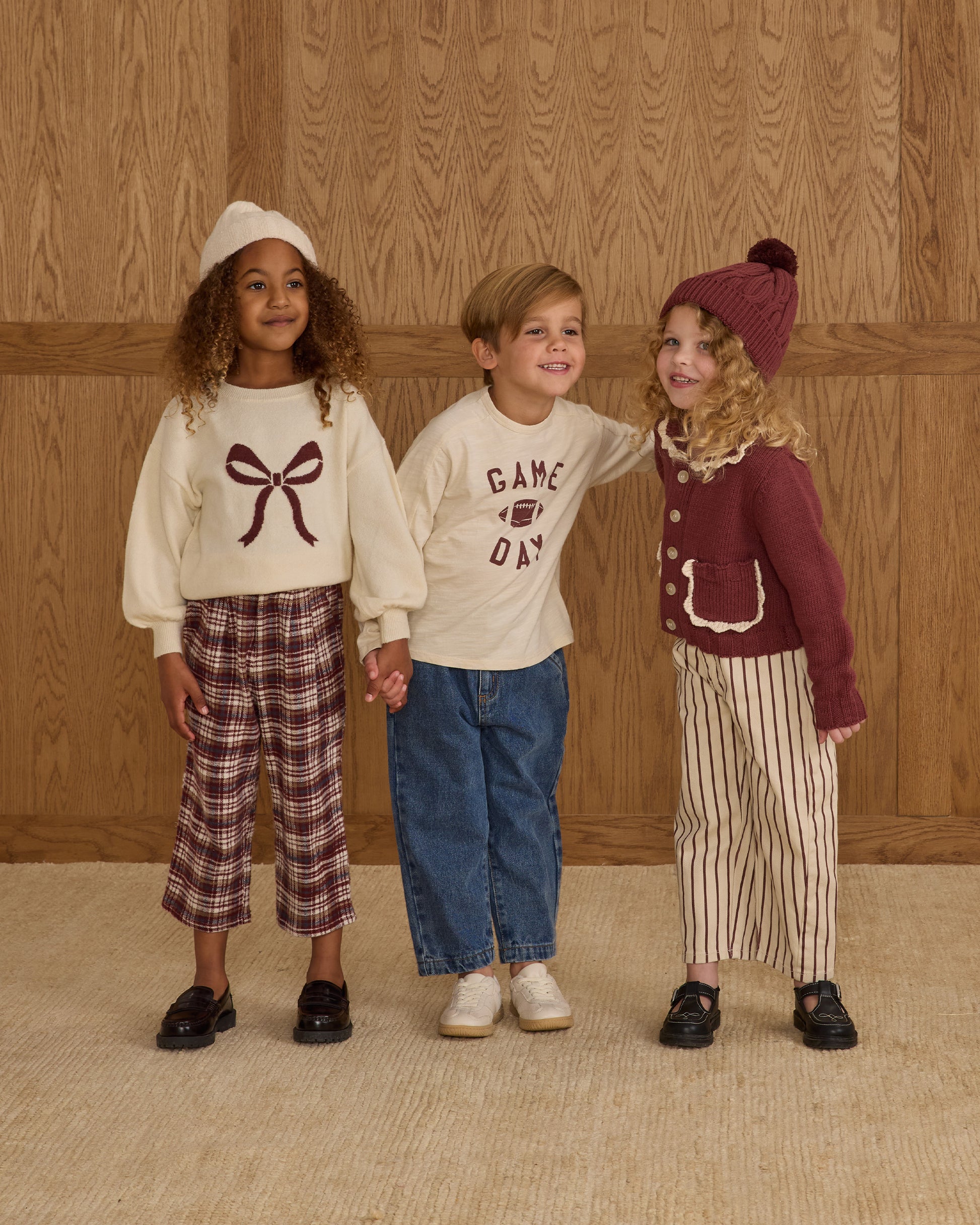 The Aspen Sweater features a fuzzy stripe pattern as well as ribbing at neckline, sleeve openings, and bottom opening.