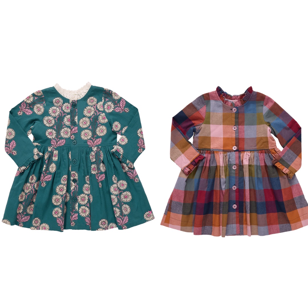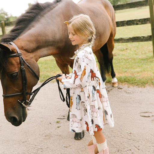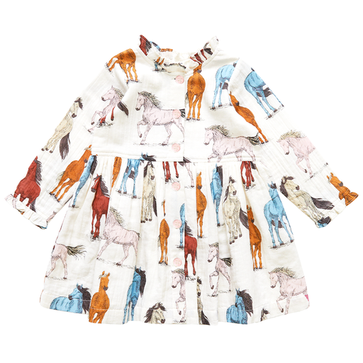 Designer details include flirty ruffles at the neck and cuff, and flash of whimsy with our signature pink glitter buttons up the front. Fully lined.