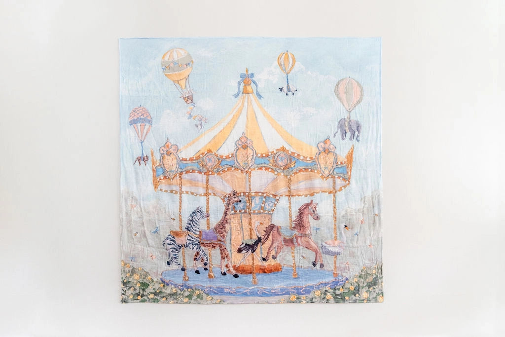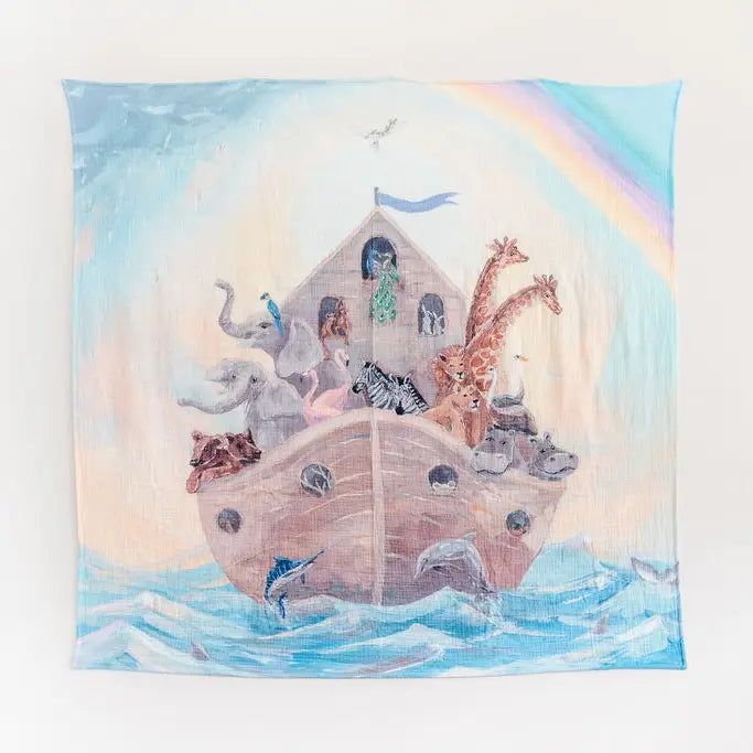 Wrap little ones in comfort with our 100% organic cotton muslin swaddle—a nursery essential. Soft, breathable, and versatile, this 47” x 47” swaddle is perfect for swaddling, tummy time, nursing covers, and stroller blankets. Featuring a hand-painted design, it adds a unique touch to any baby collection. The lightweight, single-layer muslin provides warmth while staying breathable year-round. Machine washable and eco-friendly, it makes a perfect baby gif