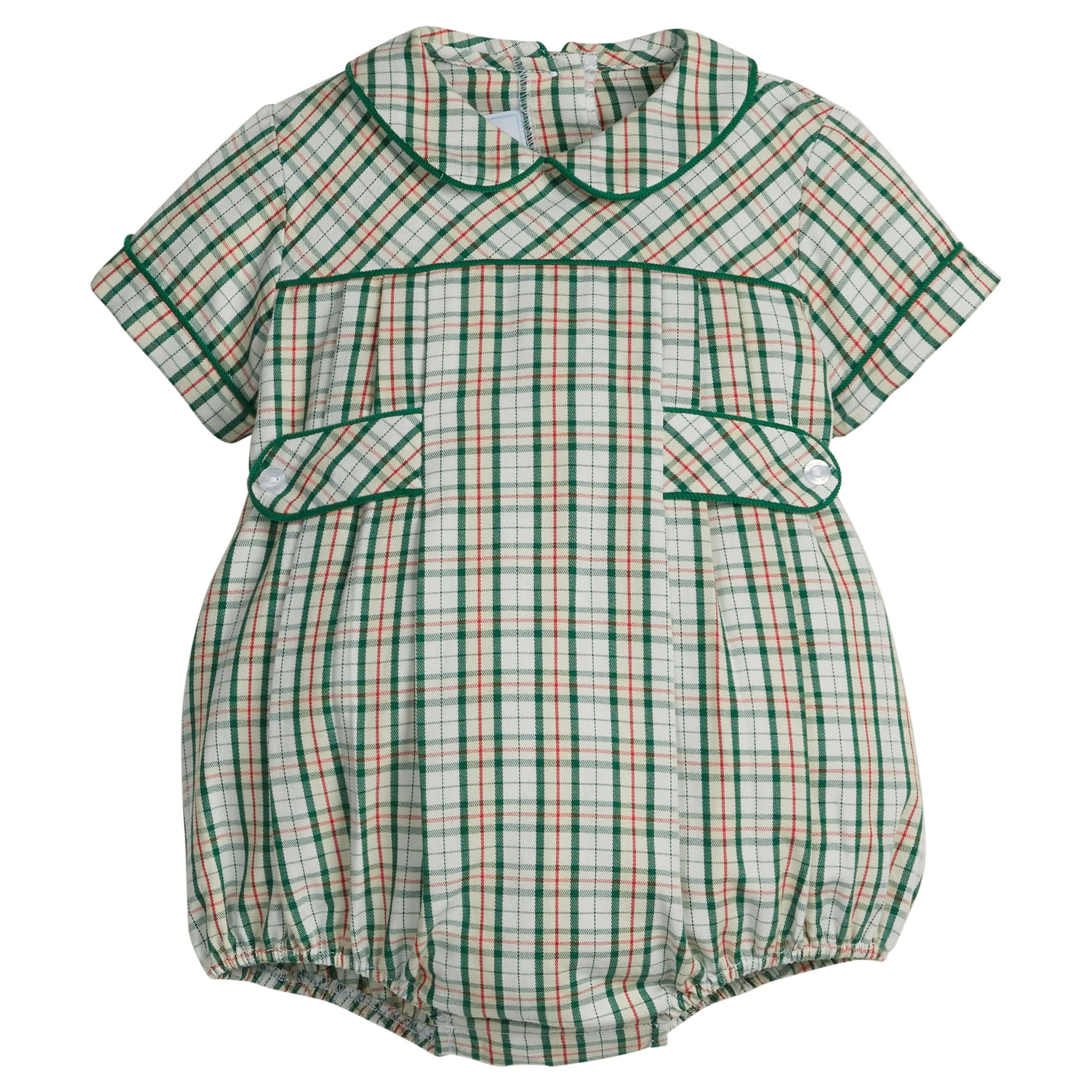 Deck the halls in our Mistletoe Tartan Collection - featuring a cream-based, green tartan with a pop of red! Our Bennett Bubble is a new style with a pleated chest, button tabs with Evergreen corduroy piping, and our signature peter pan collar. For cooler weather, layer on our Essential Cardigan in Red. From family photos to holiday parties, this festive collection is perfect for all your seasonal celebrations!