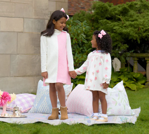 Our Long Sleeve Maerin Fitz Frock in Nonesuch Stems with Sandpearl Pink is perfect for any occasion. They will melt your heart & keep her looking sweet all day long!