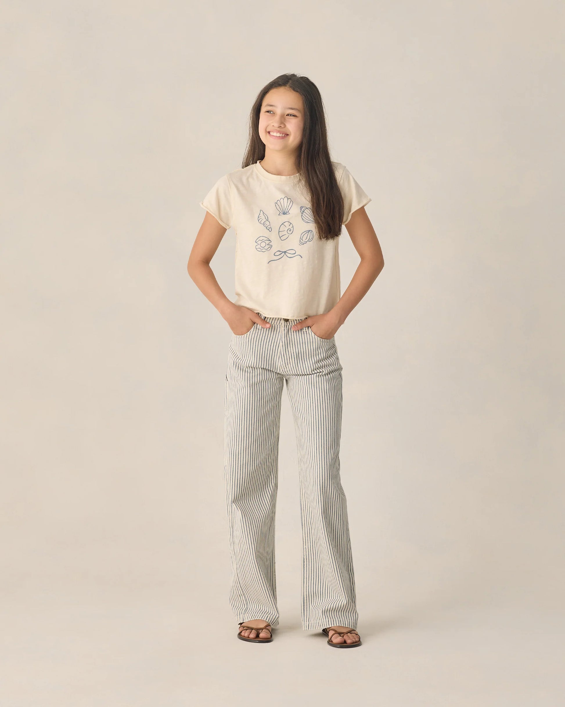 Featuring our 'railroad stripe' print on our 'natural' denim.