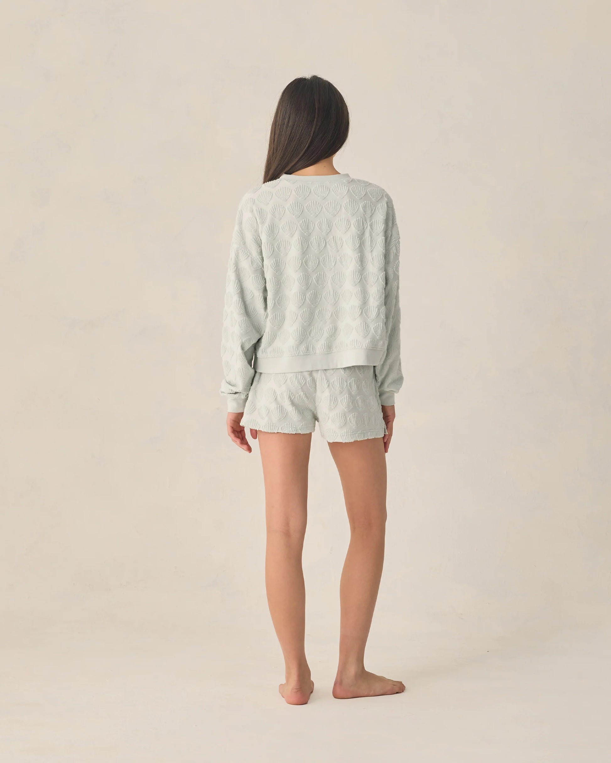 Featuring our ‘seashell terry’ print on our ‘seafoam’ hue.